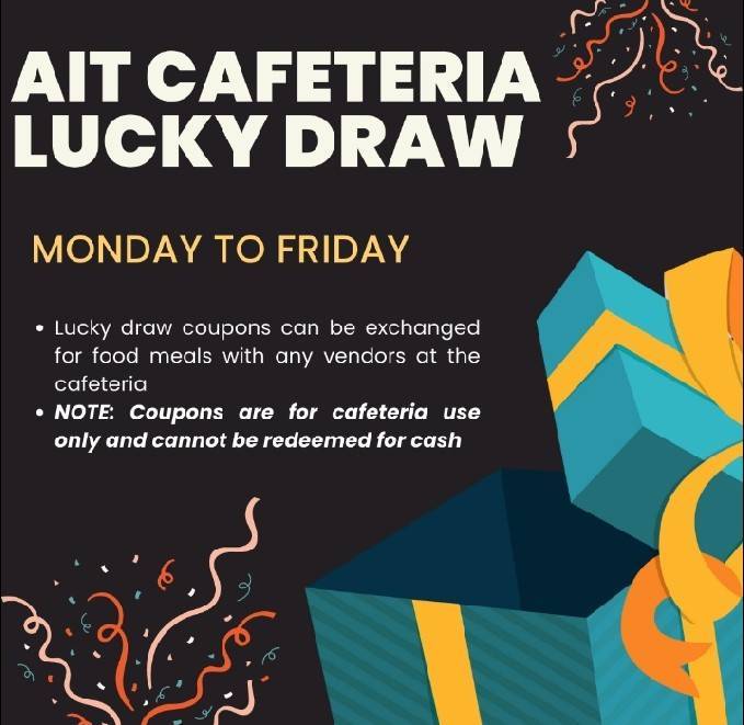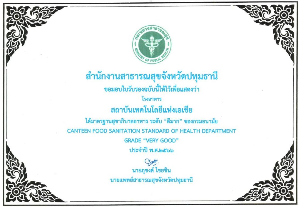 The cafeteria is inspected annually and certified that the Asian Institute of Technology meets the food sanitation standards at the ” very good” level by the” Pathum Thani Provincial Public health Office”.