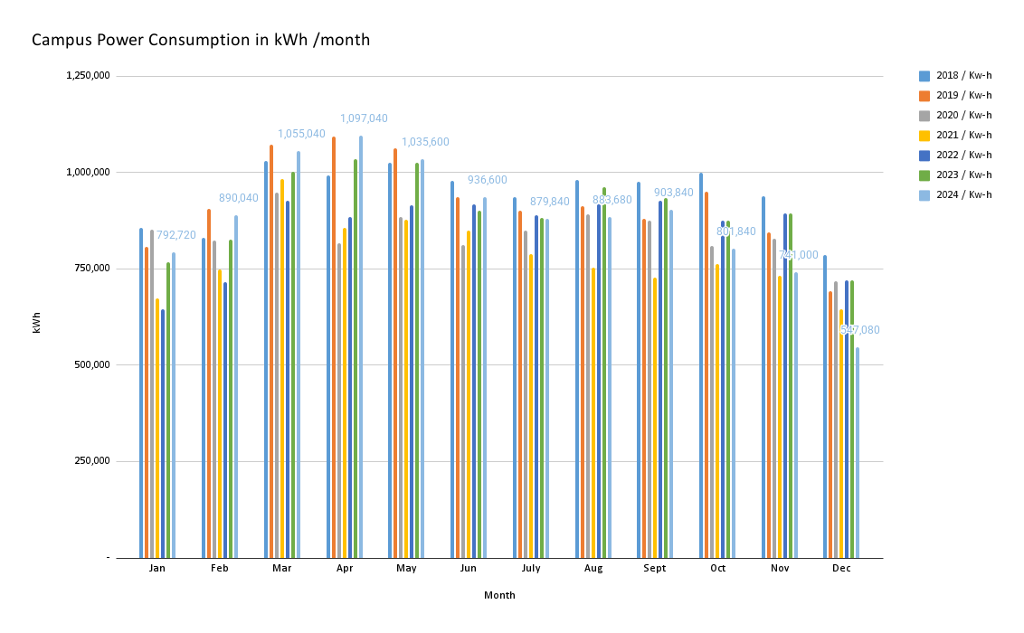 | Solar PV on campus | 2021 | 2022 | 2023 | 2024 |