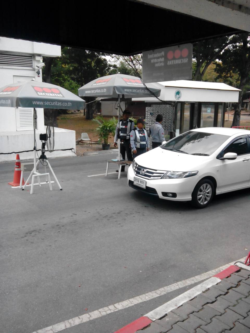 - Security guard post (heavy metal barriers)