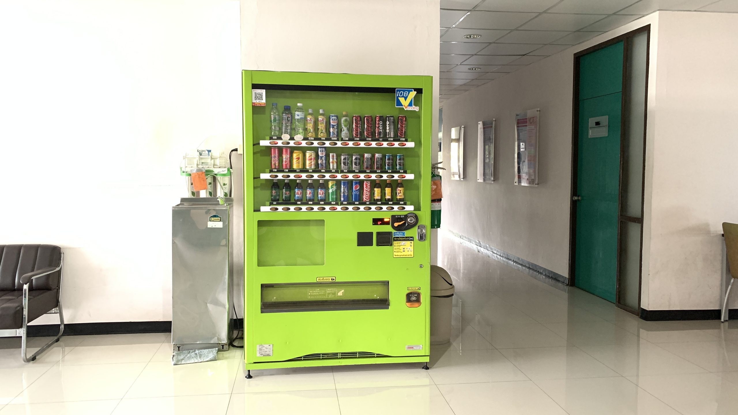 - 2 vending machine dispensers for drinking water bottles and other soft drinks