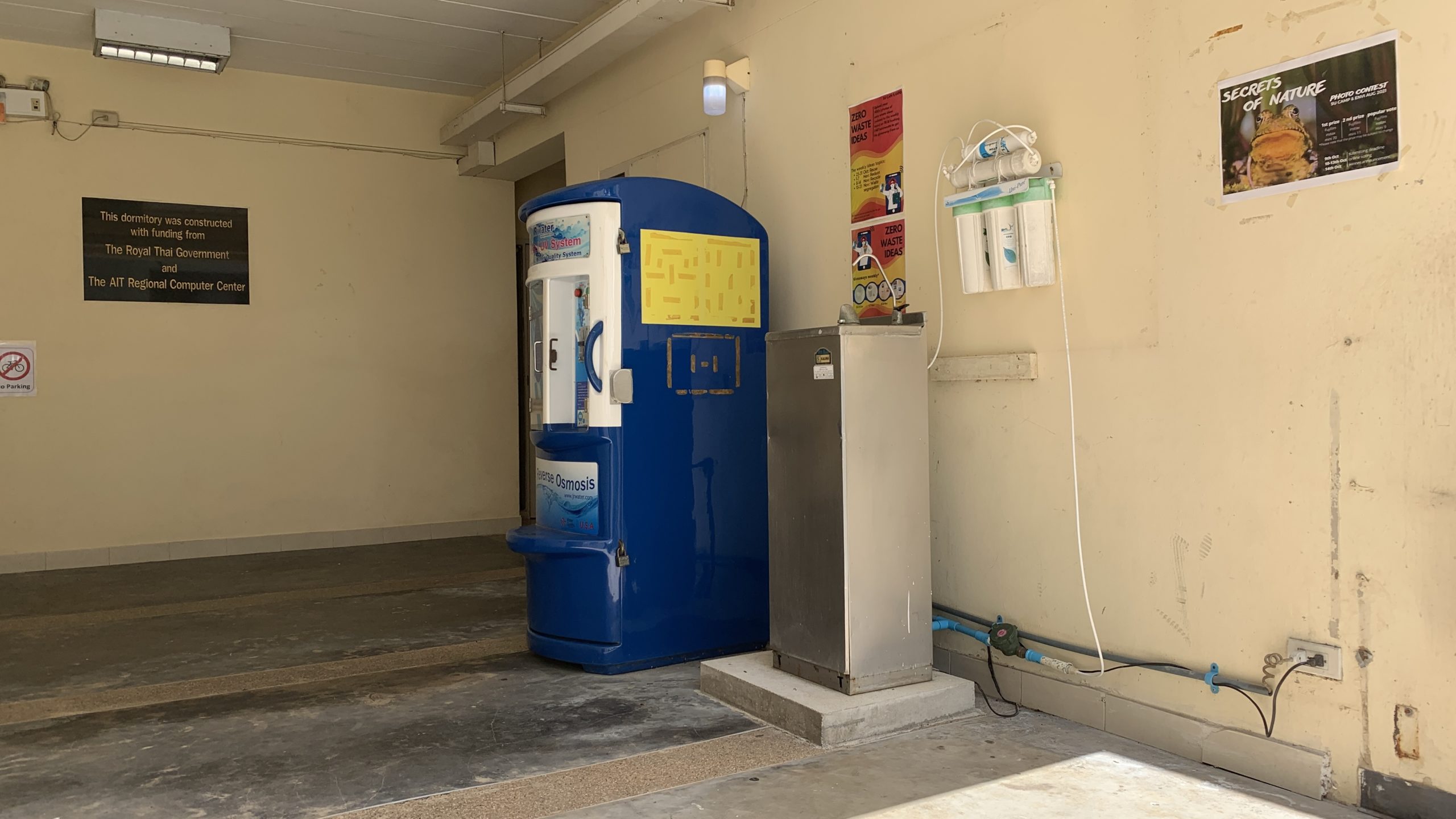 - 5 paid water dispensers vending machines in the residential area