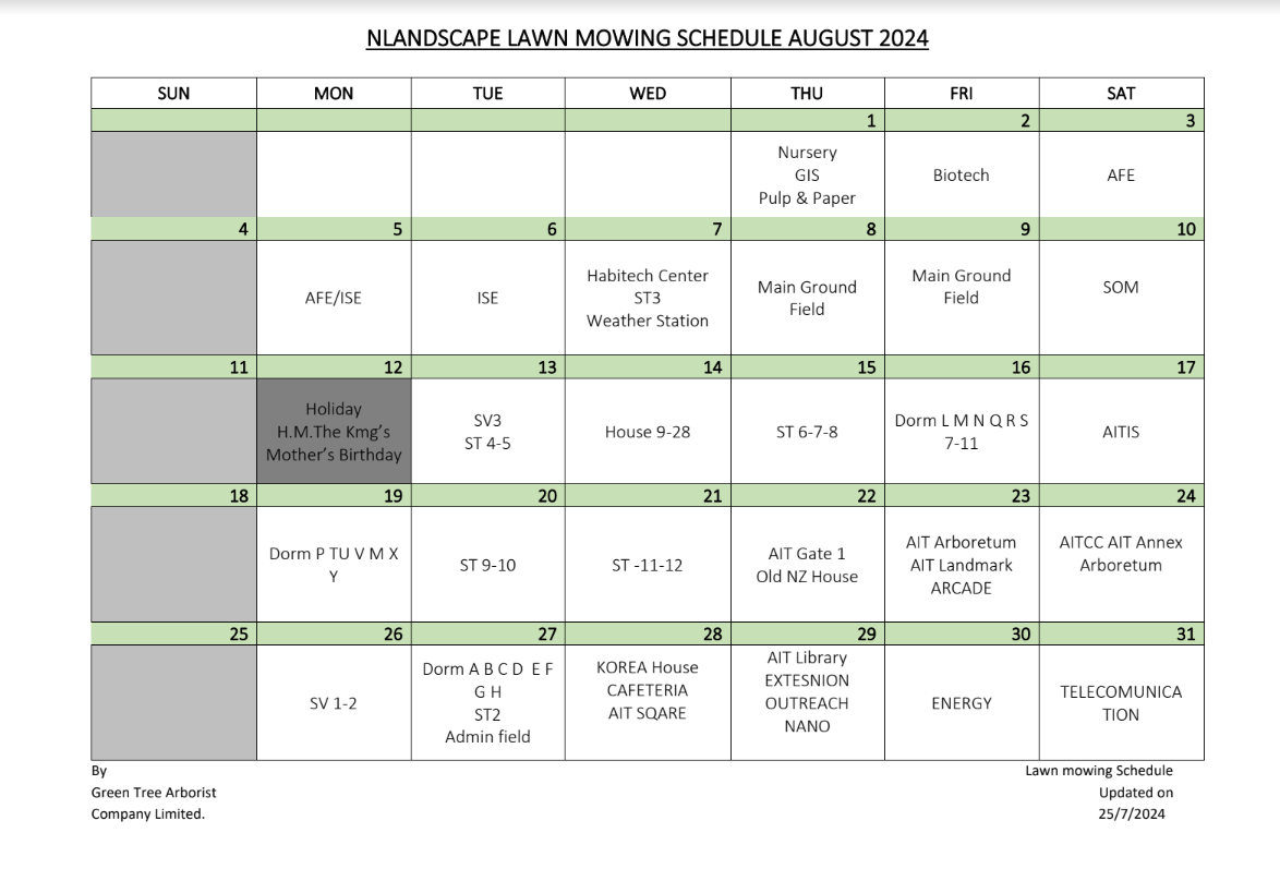 LANDSCAPE AND GROUND MAINTENANCE SCHEDULE FOR AUGUST 2024