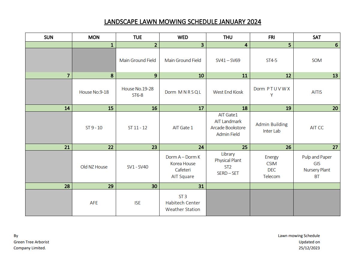 LANDSCAPE AND GROUND MAINTENANCE SCHEDULE FOR JANUARY 2024