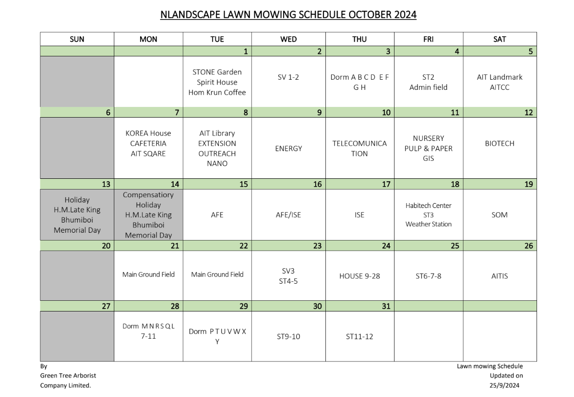 LANDSCAPE AND GROUND MAINTENANCE SCHEDULE FOR OCTOBER 2024